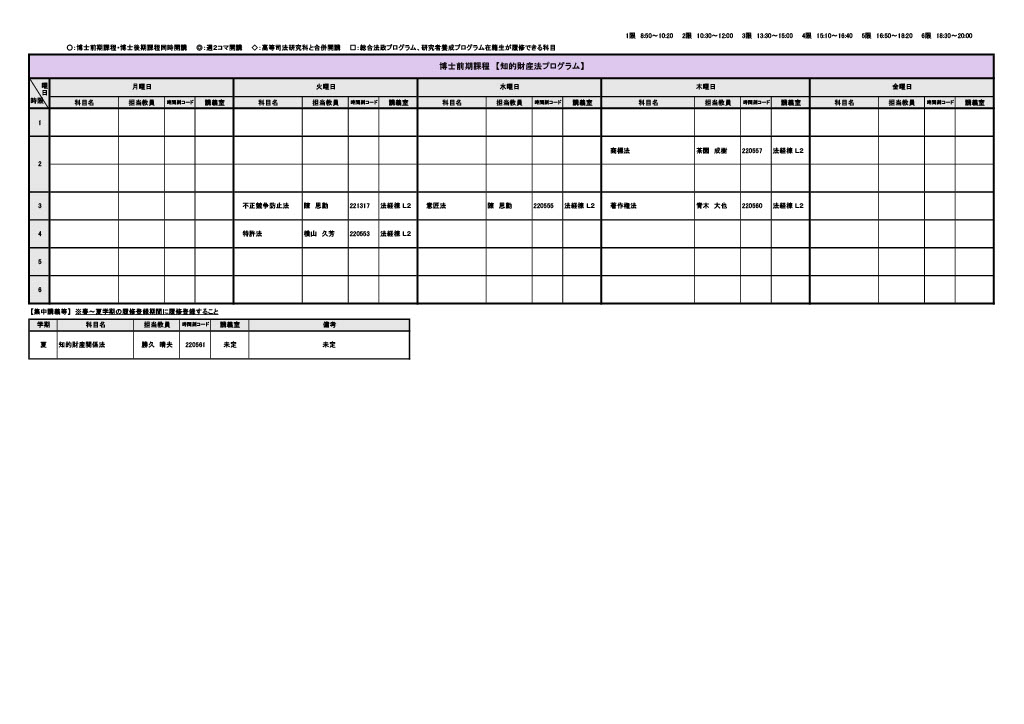 2026年度 全体時間割表