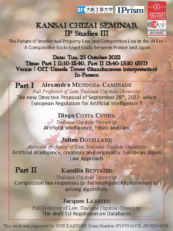 関西知的財産セミナー「AI時代における知的財産法と競争法の未来ー欧州の観点から」を10月25日(火)に開催します。