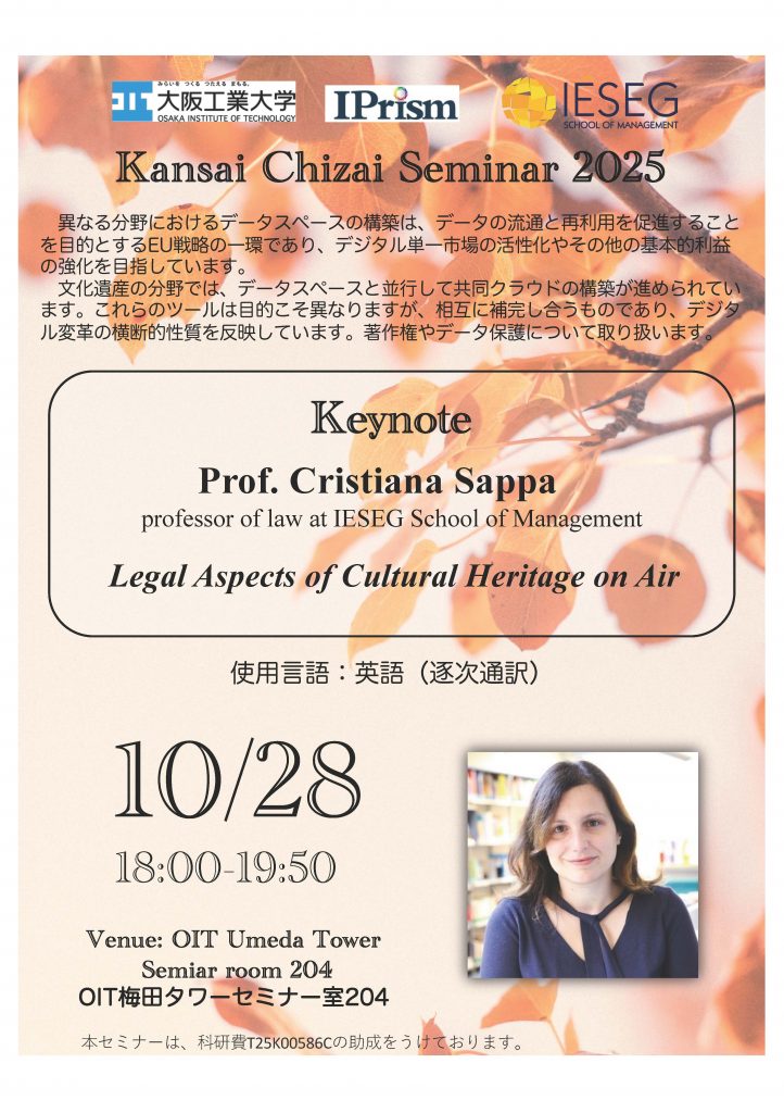 2025.10.15 セミナー 【科研費合同セミナー】関西知財セミナー「Legal Aspects of Cultural Heritage on Air」を10月28日(火)に開催します。 詳細案内・参加申込